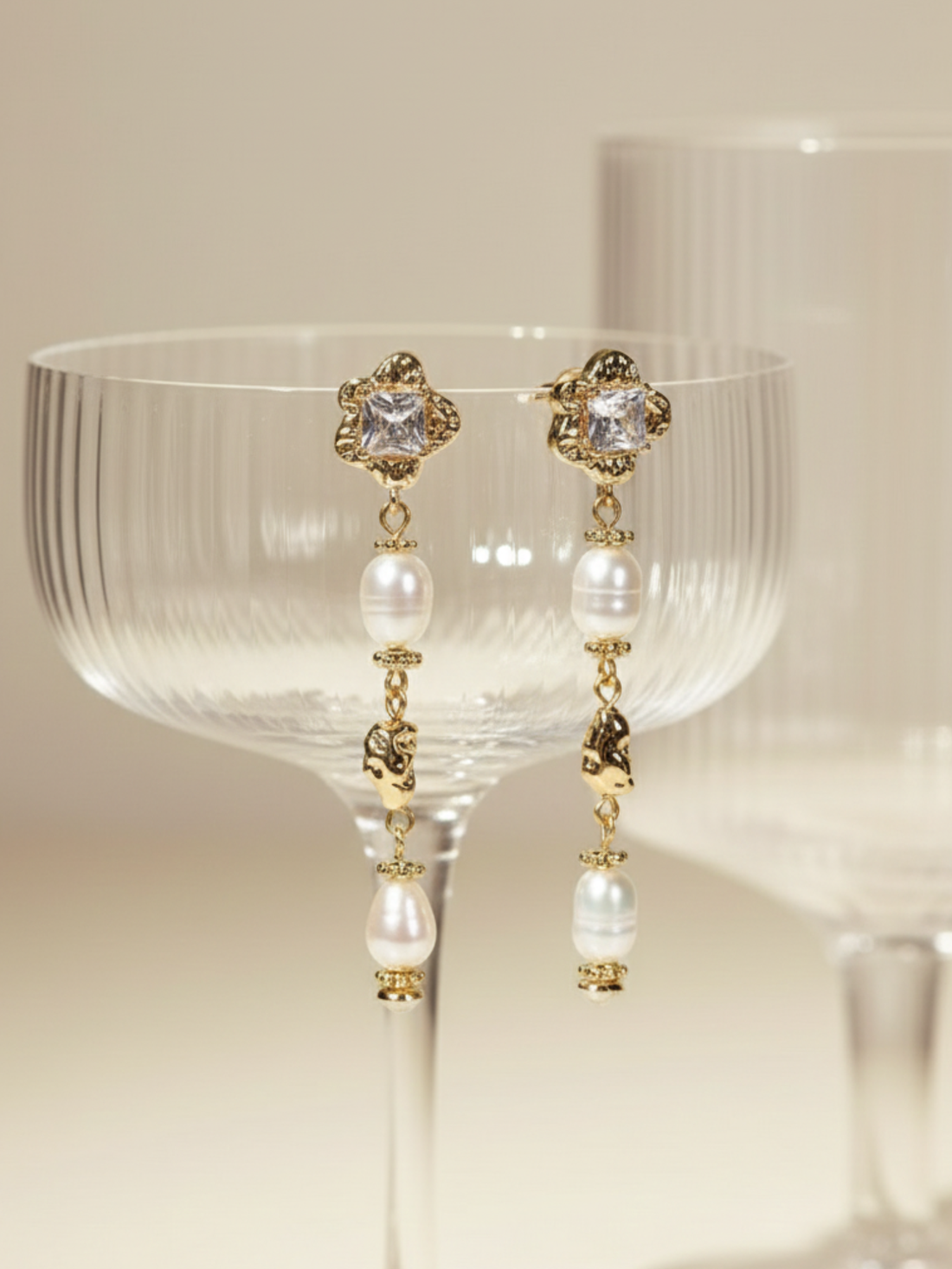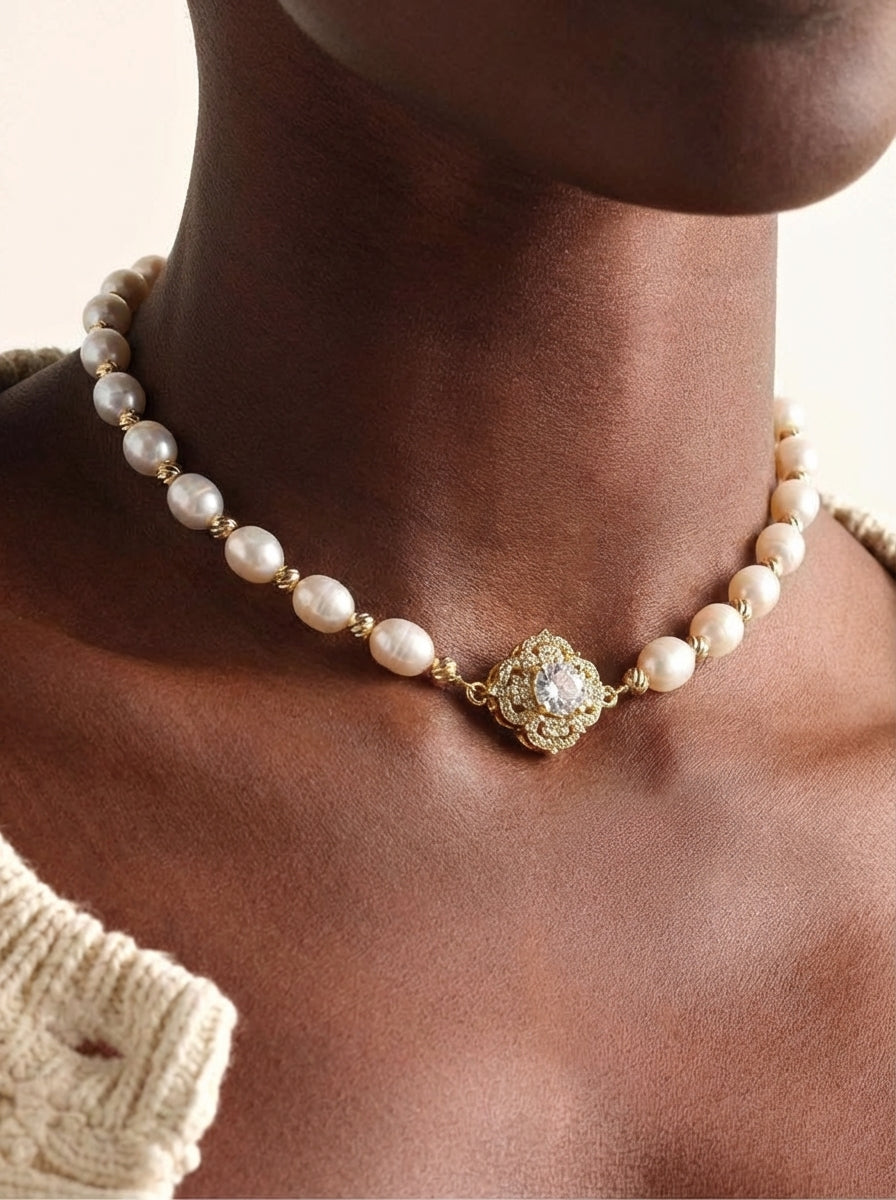 Solene Kristal Çiçek Detaylı İnci Kolye
