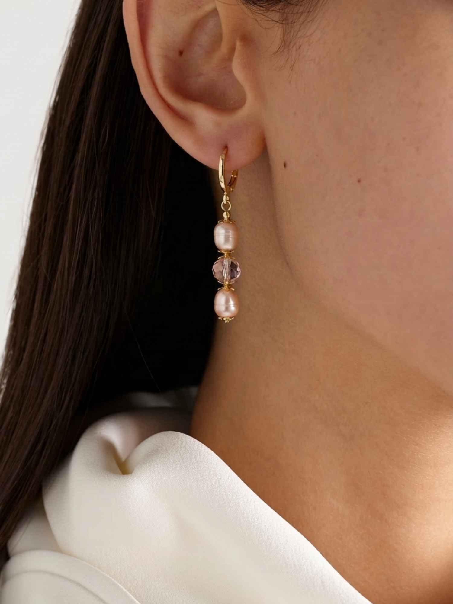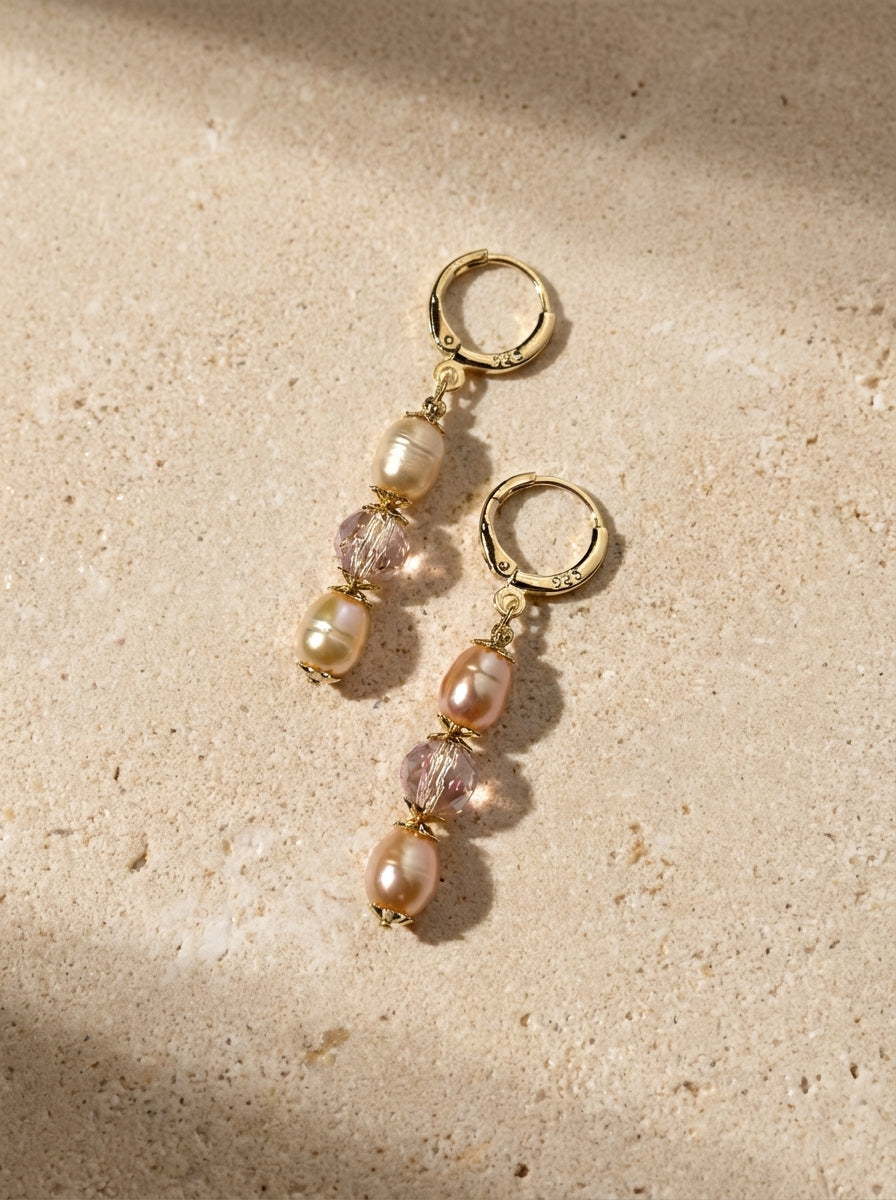 Zarif, pastel tonların yumuşak ışıltısını yansıtan Amélie Küpeler, yüksek kalite 9mm pembe tatlı su incileri ve soft sarı Swarovski kristalleriyle tasarlandı. Minimal formu, sade ama etkileyici bir görünüm sunarken, 925 ayar gümüş altın kaplama halka detayıyla modern bir dokunuş kazanır. Günlük şıklıkta zarafet, özel günlerde ise sofistike bir parıltı sağlar.