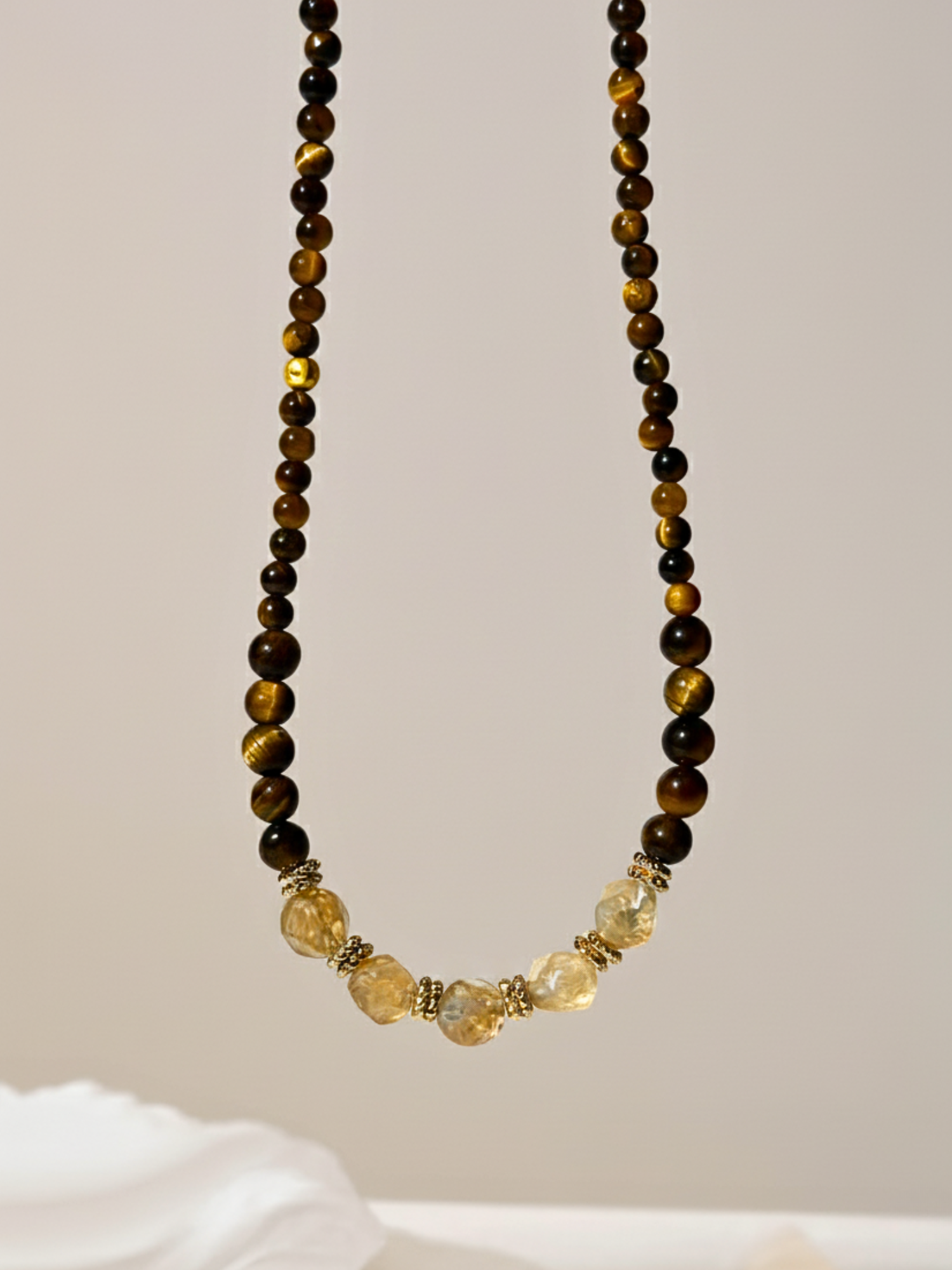 Bu kolye, hem güçlü hem zarif bir enerji taşır — her bakışta sıcak, dengeli ve zamansız bir parıltı.
