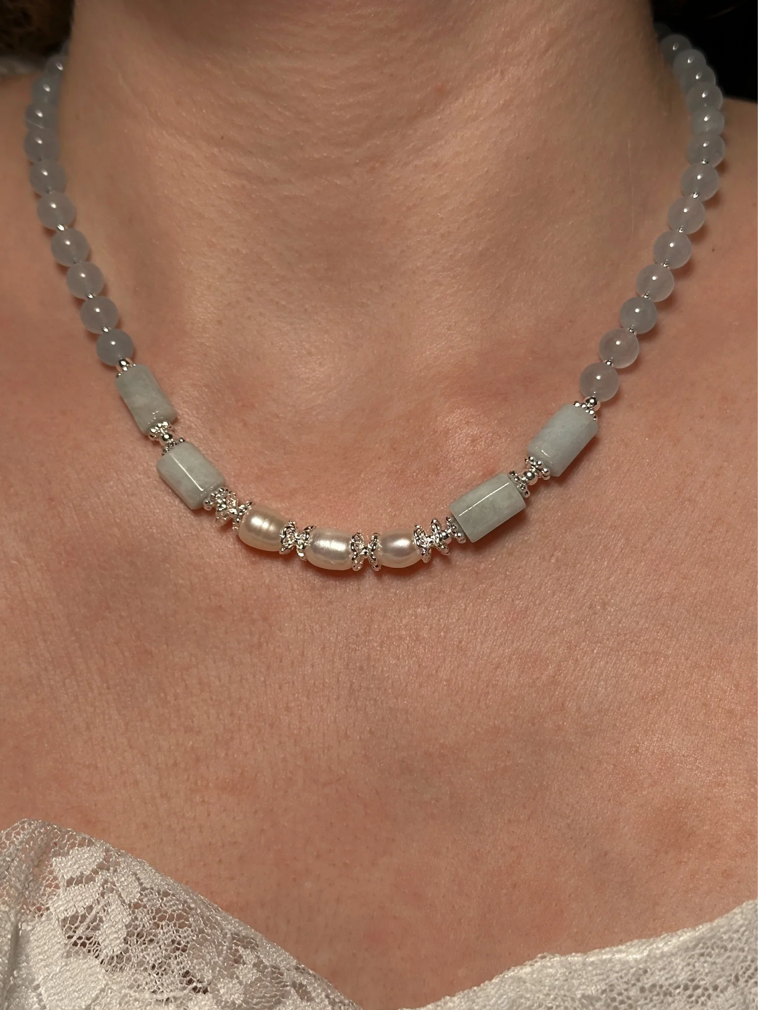 • Taşlar: Akuamarin taşı, tatlı su incileri, mavi kalsedon boncuklar