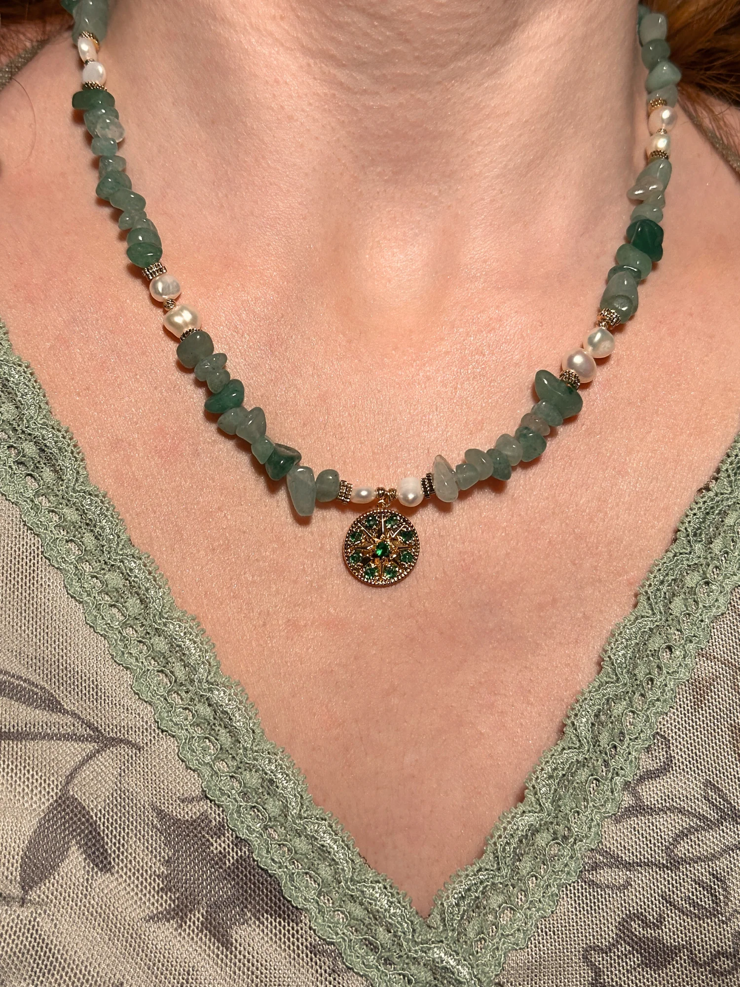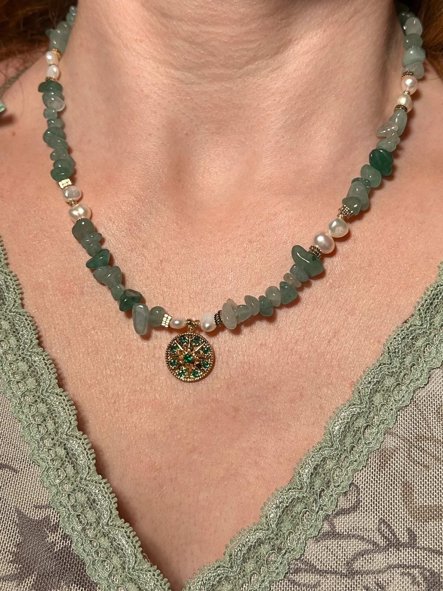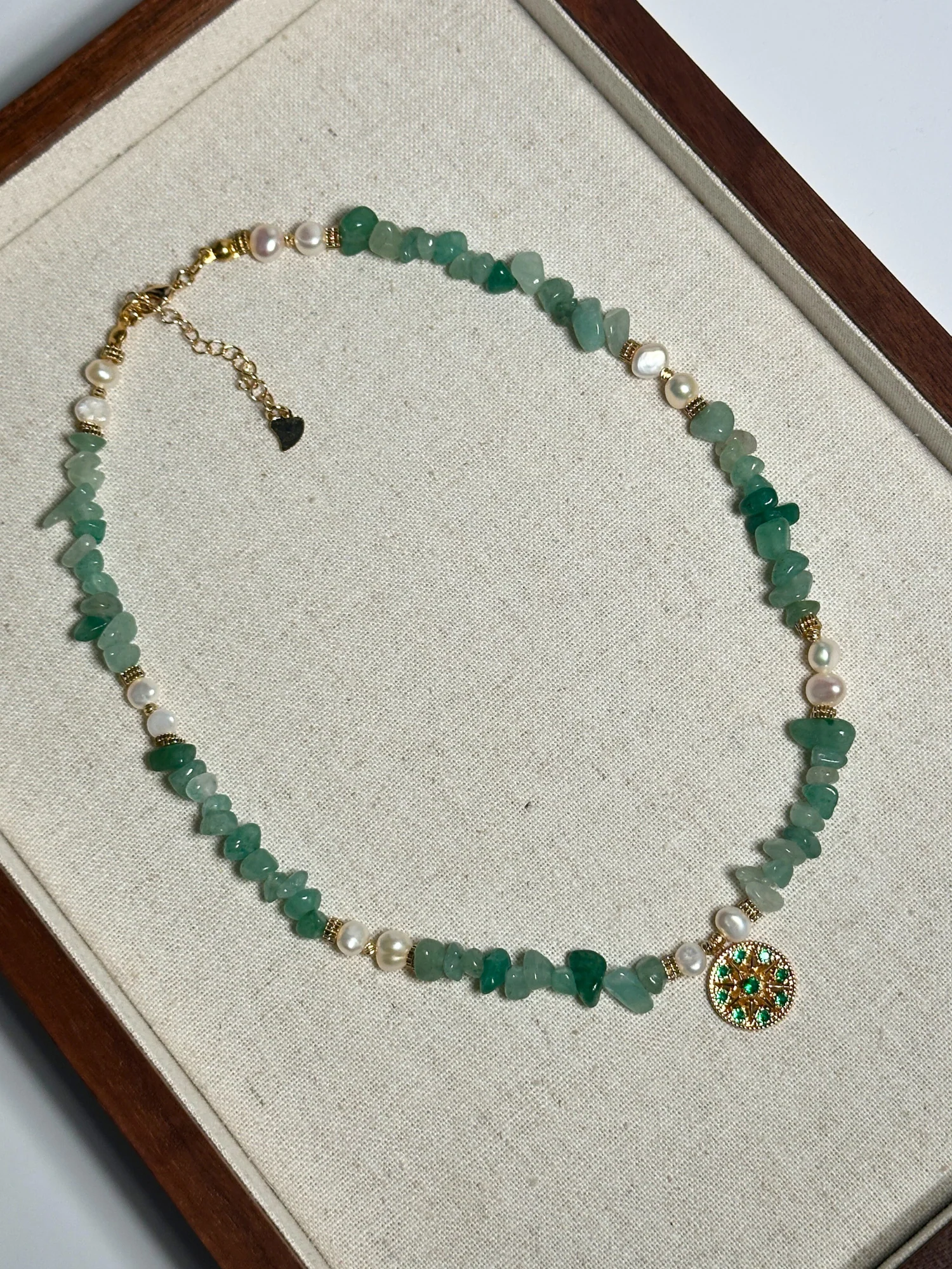 - Yumuşak yeşil tonlarda, düzensiz formda aventurin taşları