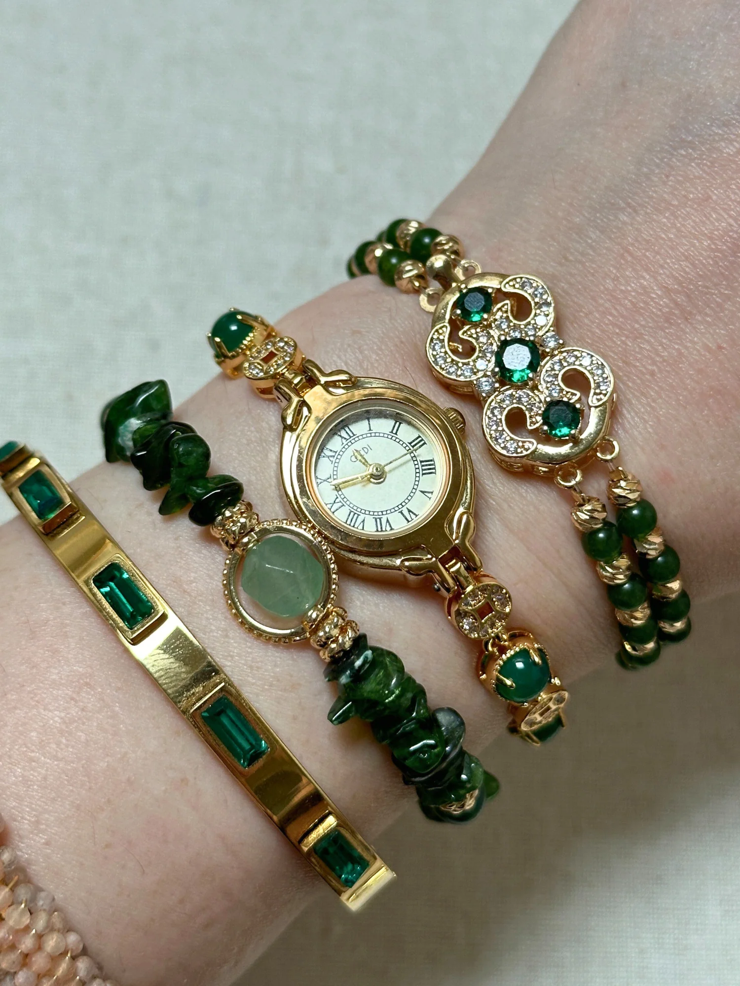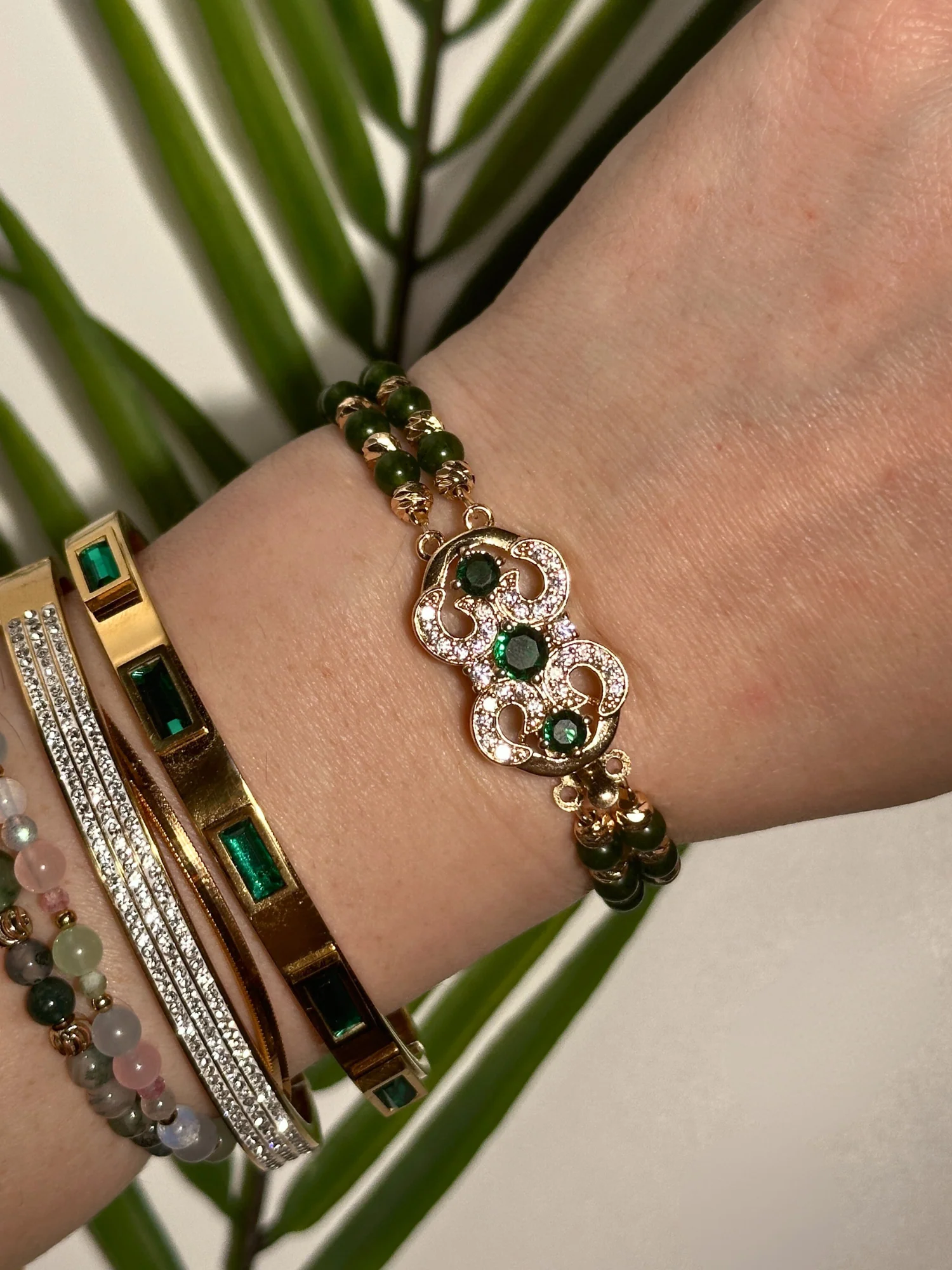 Mor ve yeşilin en eşsiz tonlarının huzur veren enerjisini zarif bir dokunuşla birleştiren Lyra Bileklik, doğal güzelliği ve lüks sadeliği bir arada sunar.