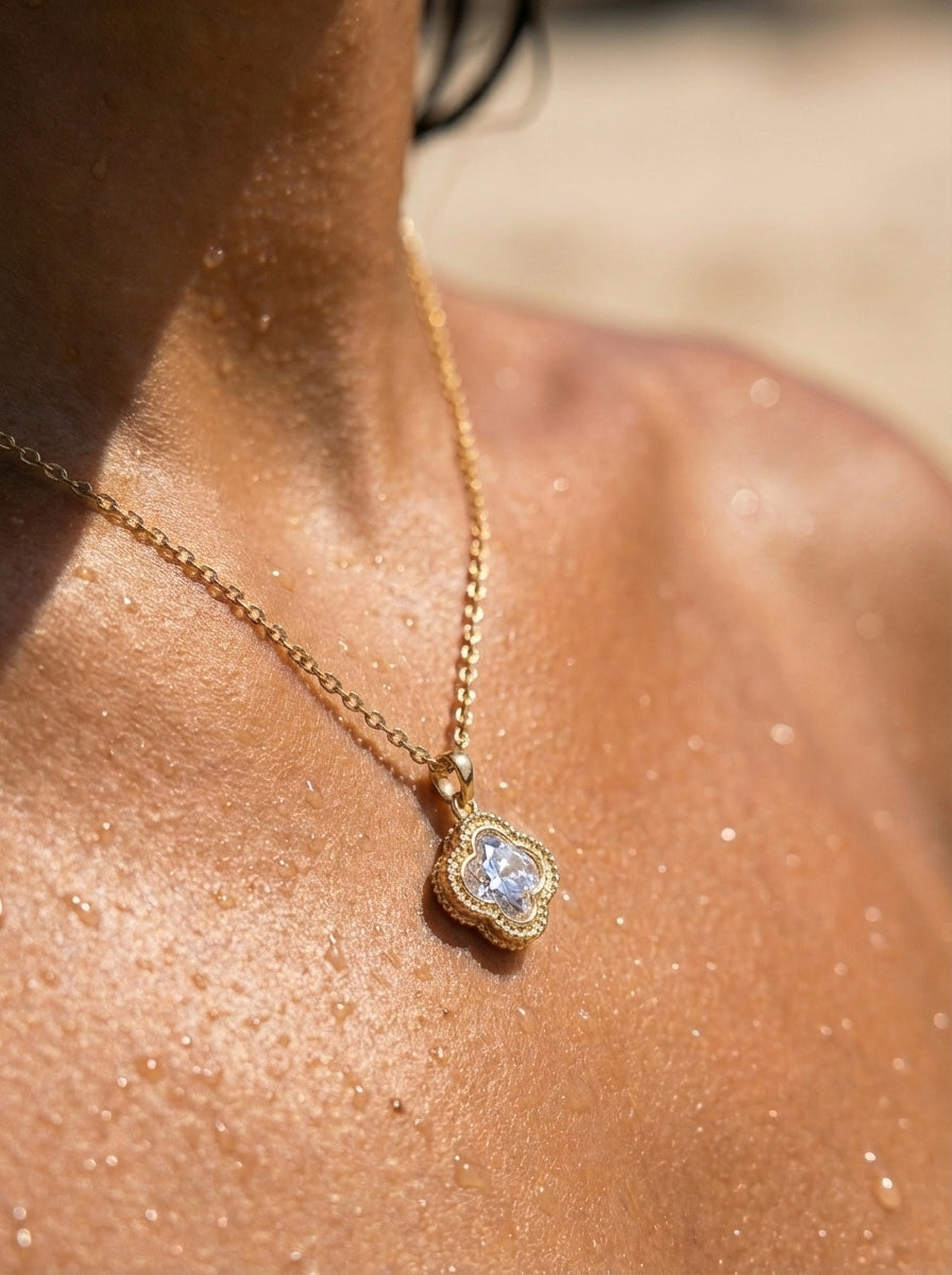 Minimal parlak taşlı charm, boyunda “temiz” ve lüks bir görünüm yaratır; tek başına zarif şıklık sunar, katmanlı kullanımda ise diğer kolyeleri yükselten ideal bir parça olur. Günlük stile de özel anlara da uyum sağlayan, zamansız bir klasiktir.