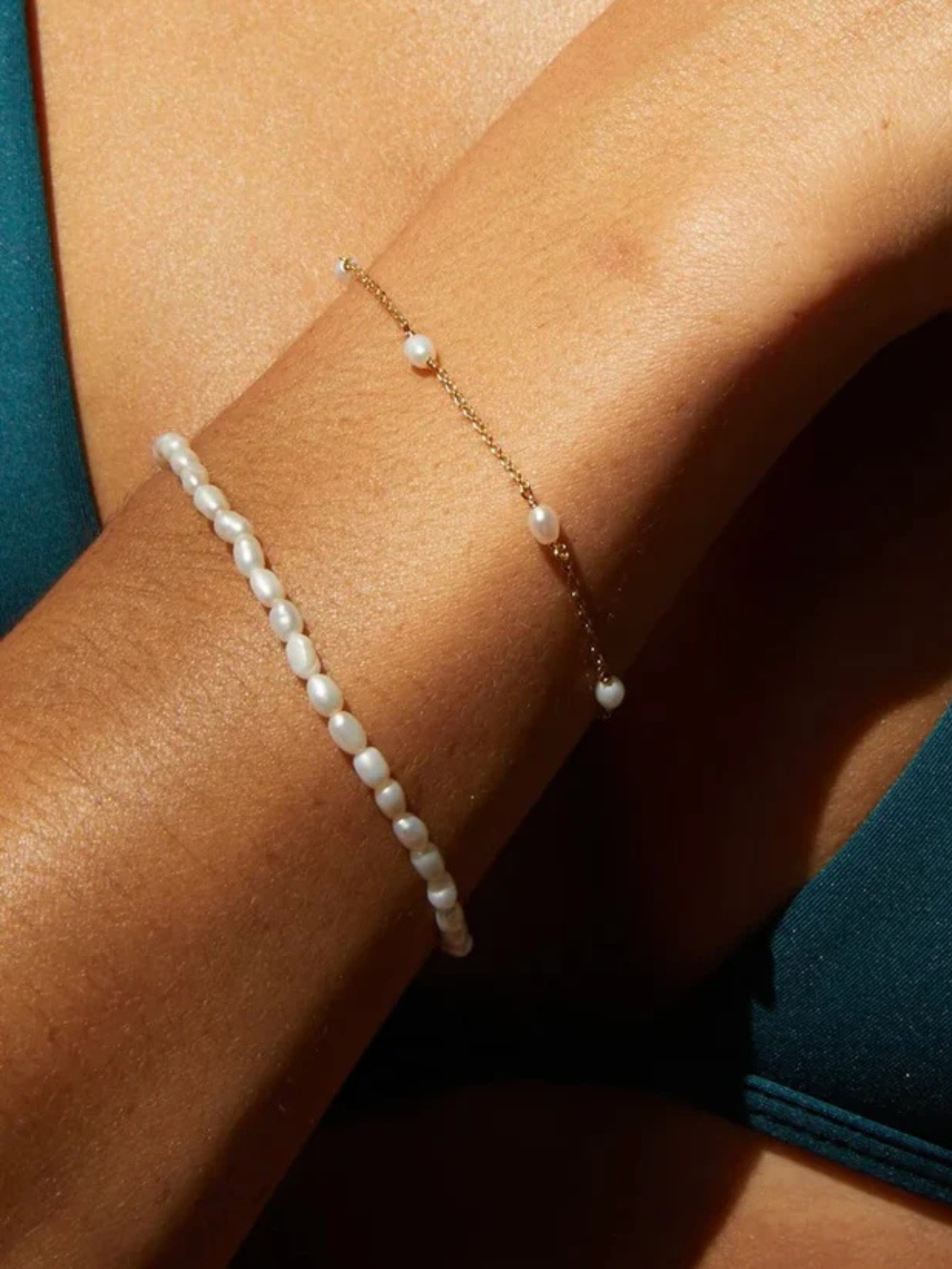 Saf ve zamansız bir zarafeti bileğe taşıyan Lydia Minimal Tatlı Su İnci Bileklik, 2–3 mm gerçek mini incilerin doğal ışıltısıyla sakin ama etkileyici bir görünüm sunar. İnci diziliminin minimal formu, bilekte “temiz” ve rafine bir etki yaratır; tek başına zarif bir imza gibi durur, katmanlı takılarda ise her parçayı daha şık gösteren mükemmel bir baz olur. Günlük kullanım için hafif, her stile uyum sağlayacak kadar da zamansız bir parçadır.