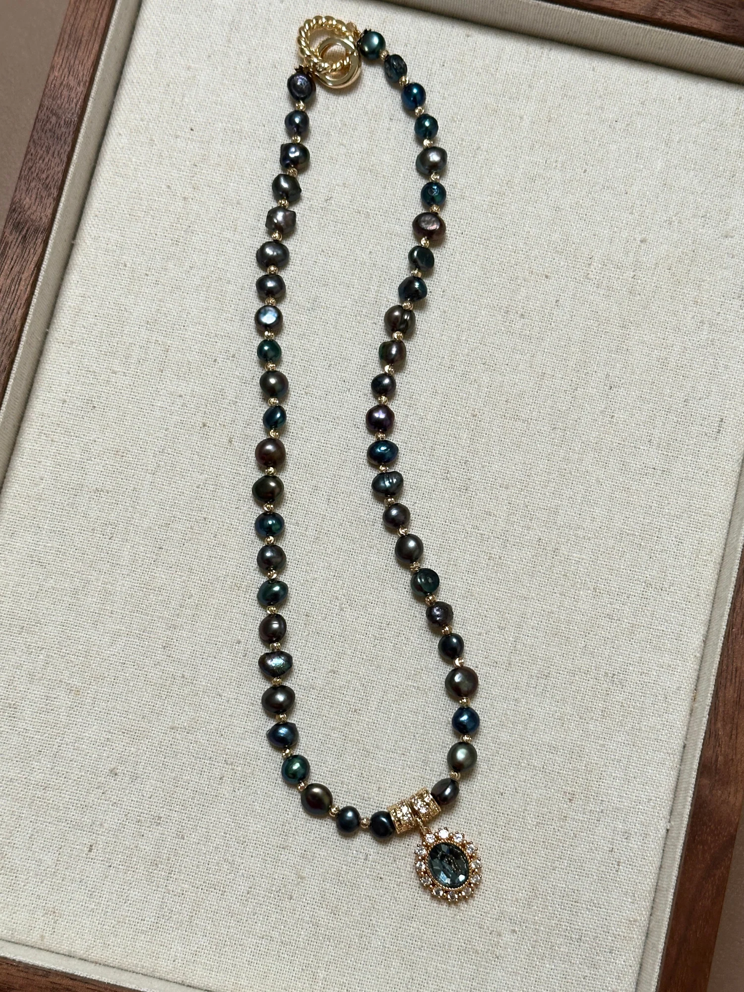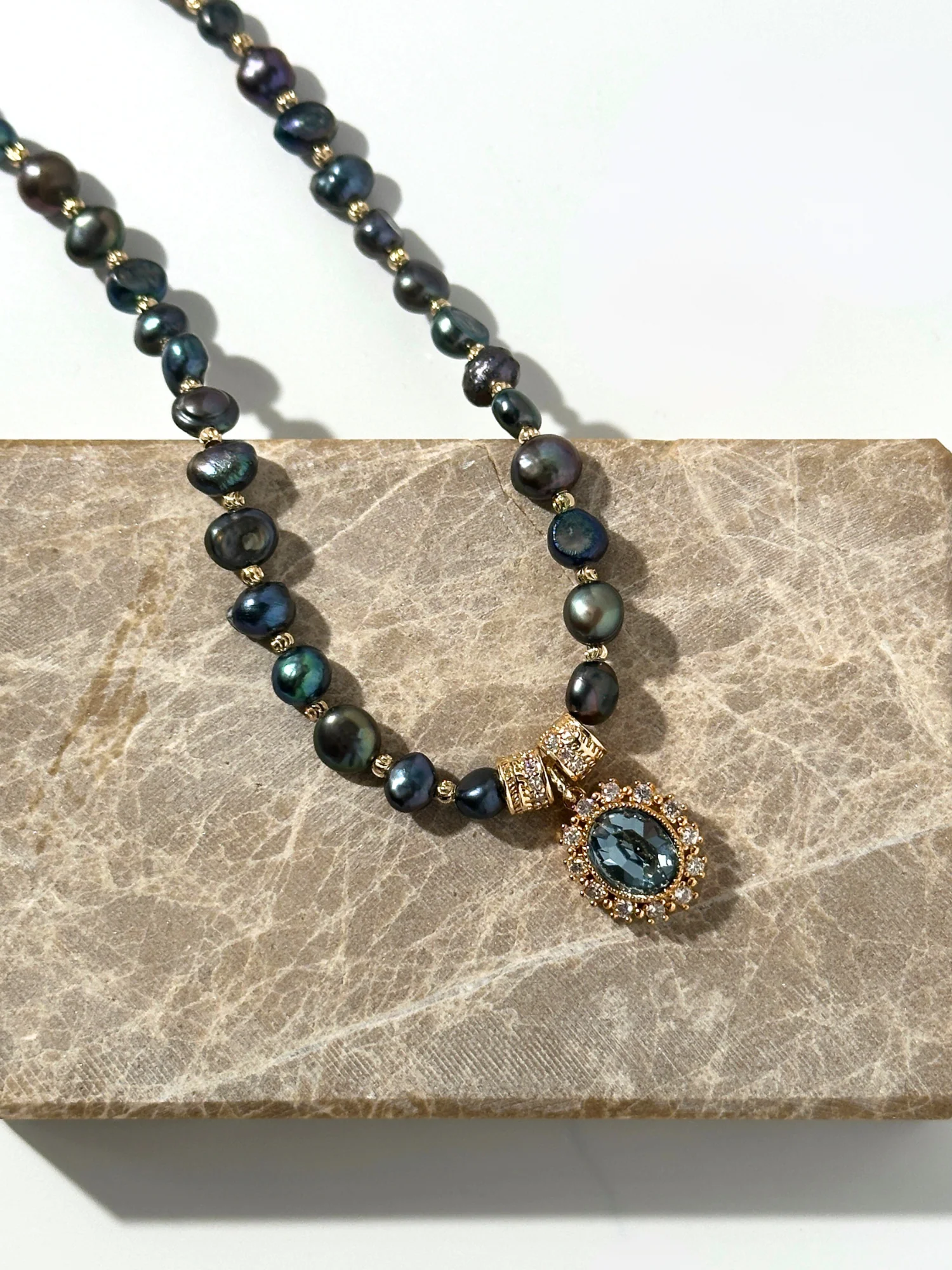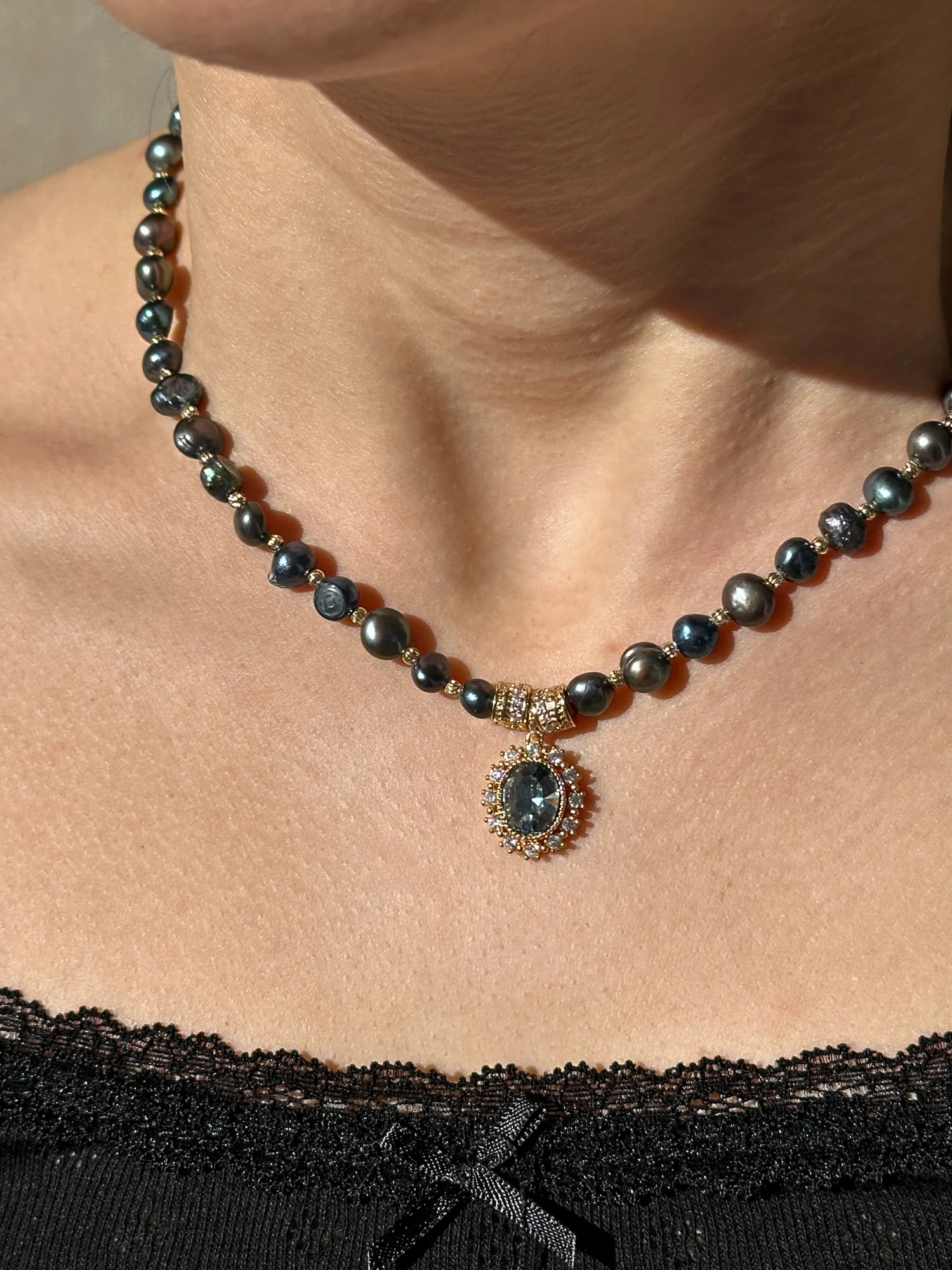 • Sofistike ve zamansız bir duruş için düzensiz şekilli lacivert yansımalı siyah tatlı su incileri