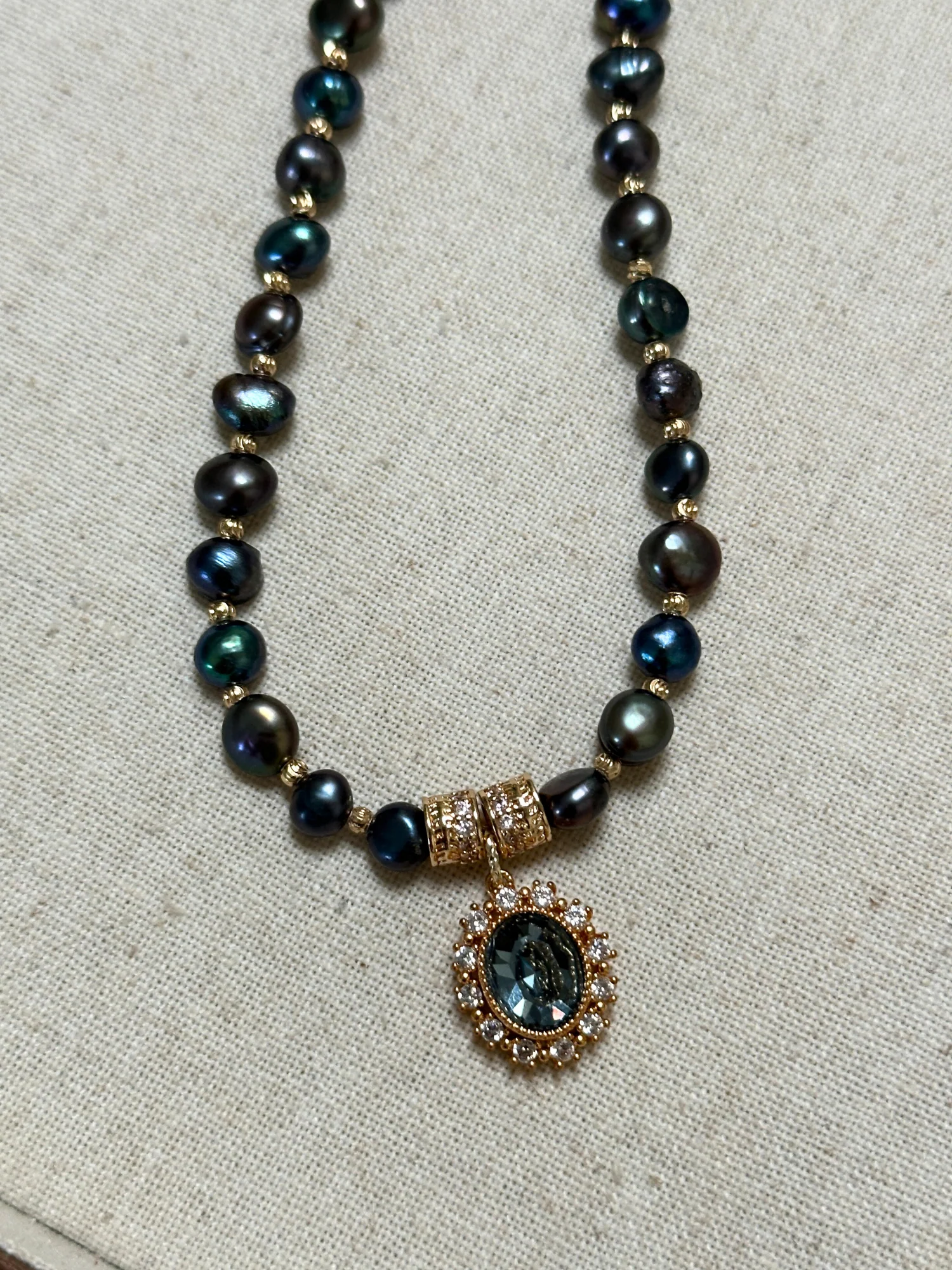 İncilerin arasına yerleştirilen kalın 14K altın kaplama mini detaylar, hem lüks bir ışıltı hem de uzun ömürlü bir kullanım sunarken; vintage esintili zirkon pendant, kolyeye kraliçemsi bir zarafet katıyor.