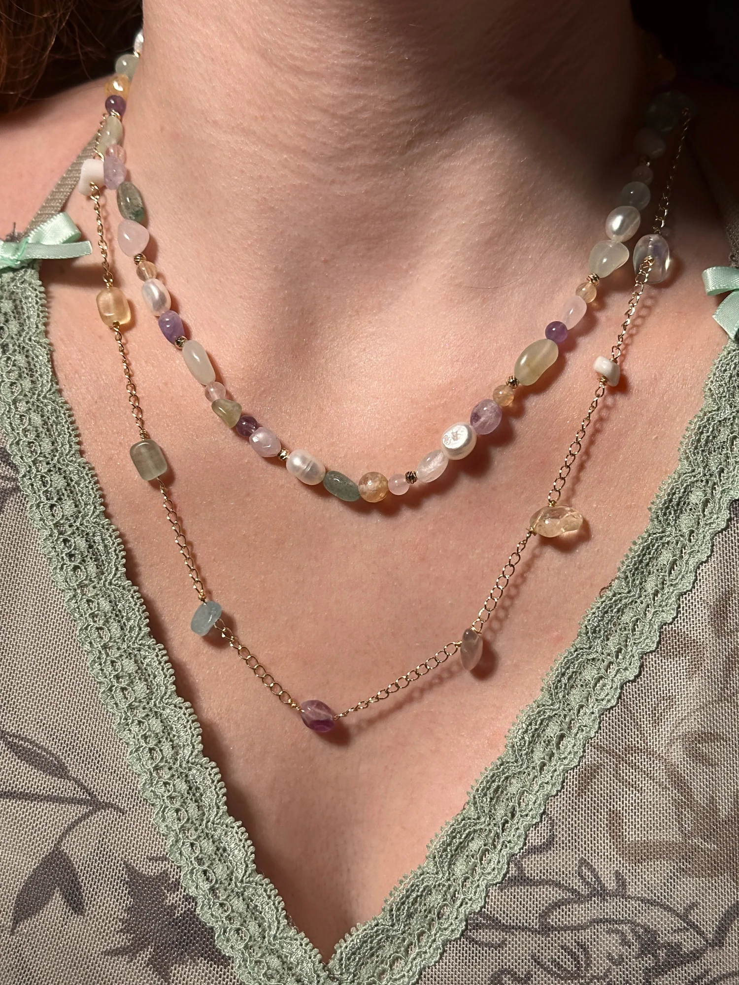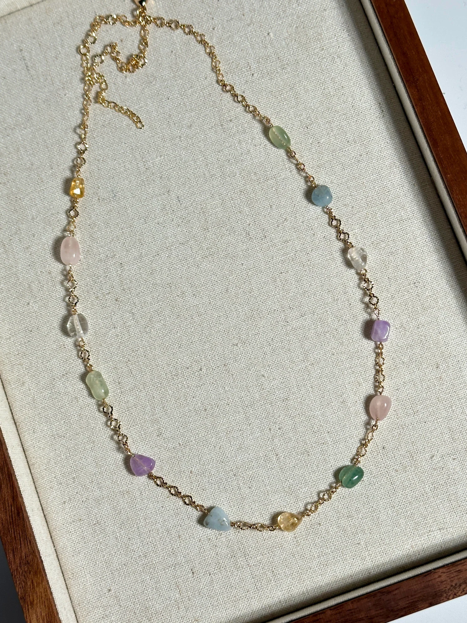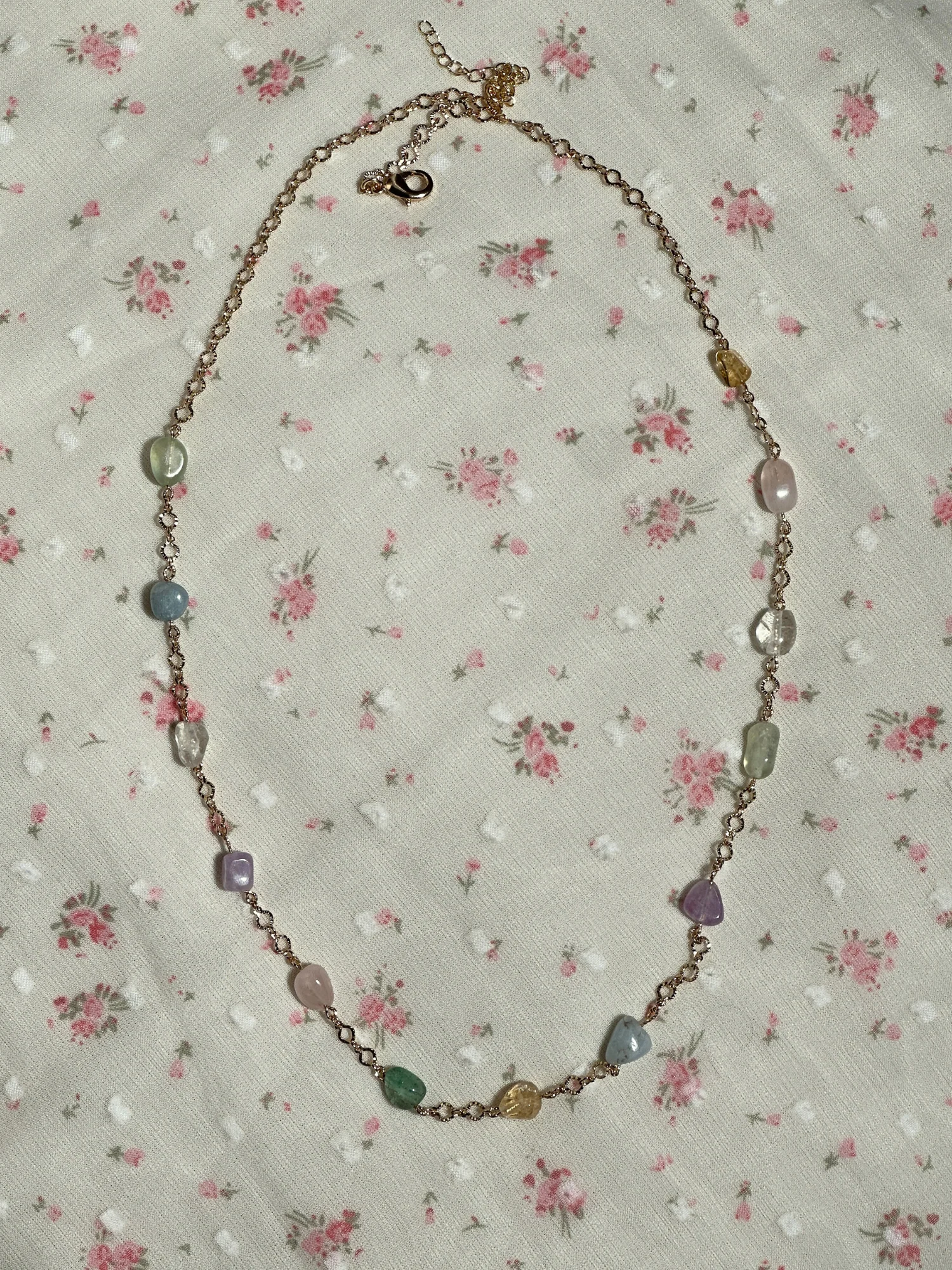 Her taşı kendine özgü renkte ve enerjide olan bu kolye, ister katmanlı ister tek başına takıldığında, görünümünüze doğal bir zarafet ve büyüleyici bir parlaklık katar.