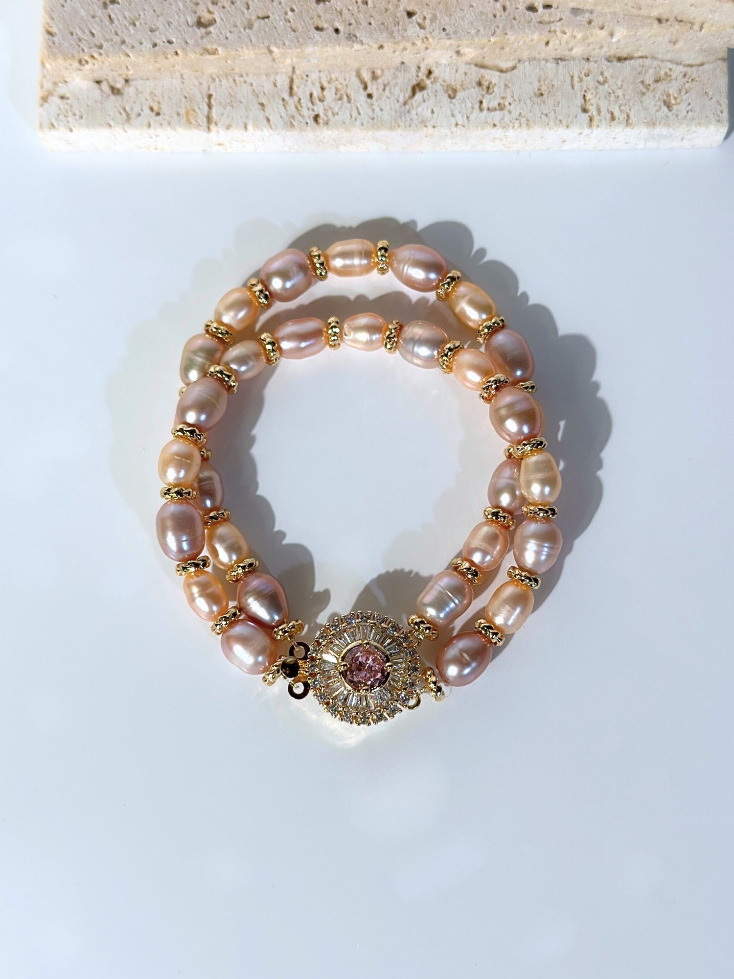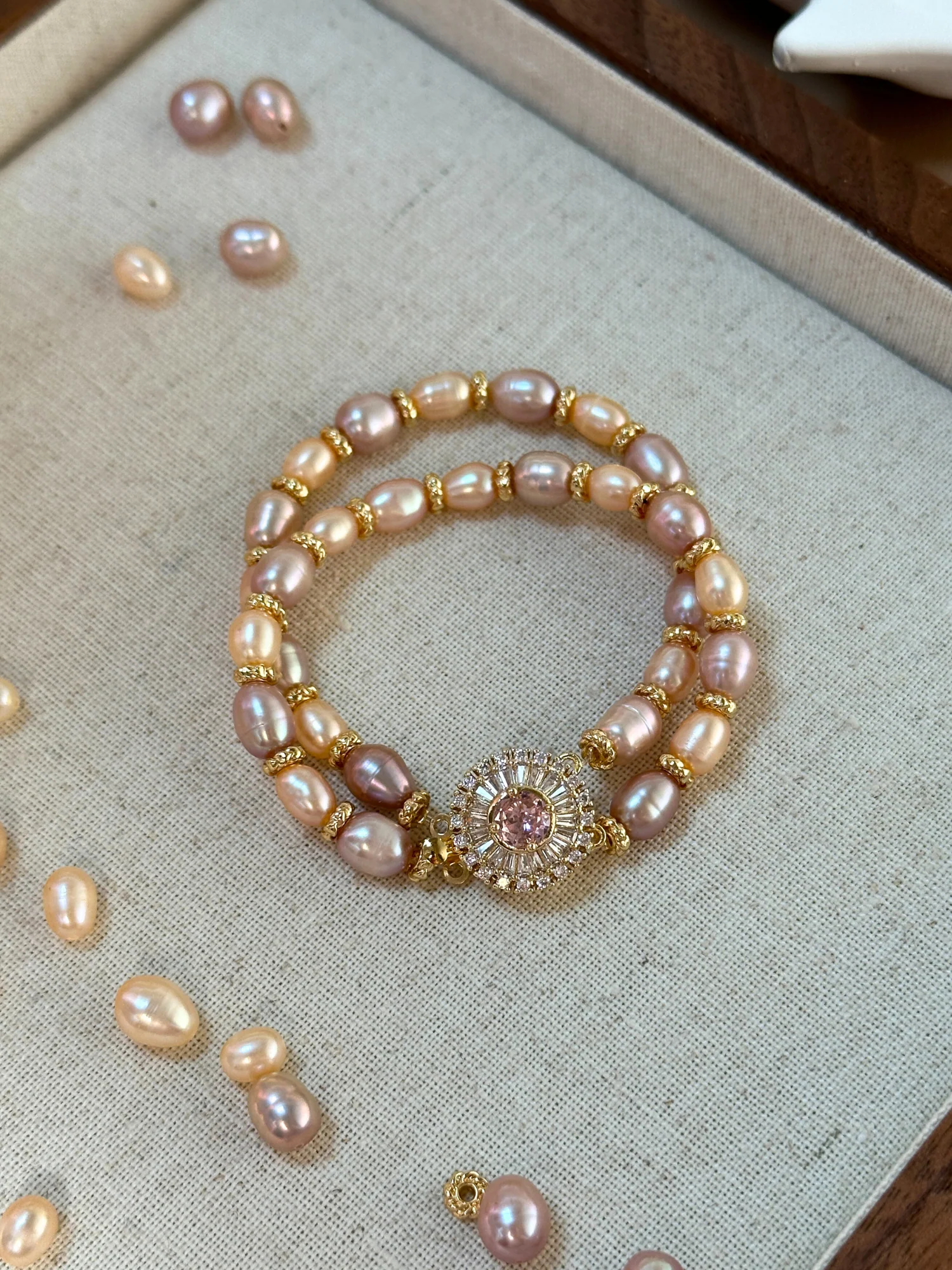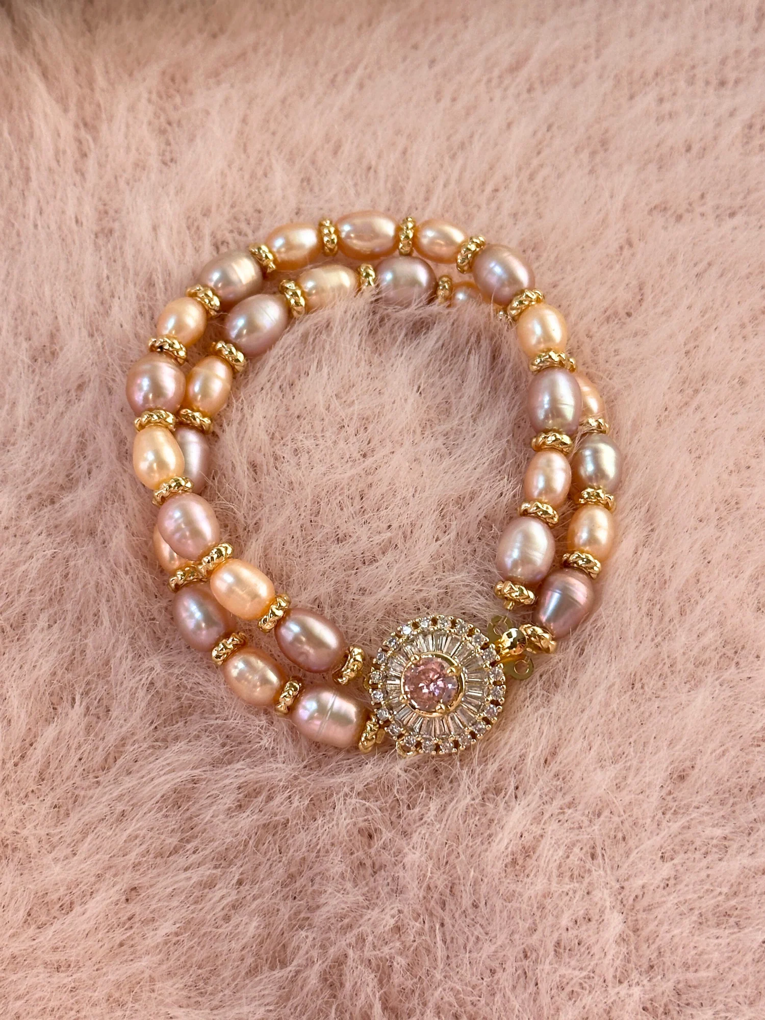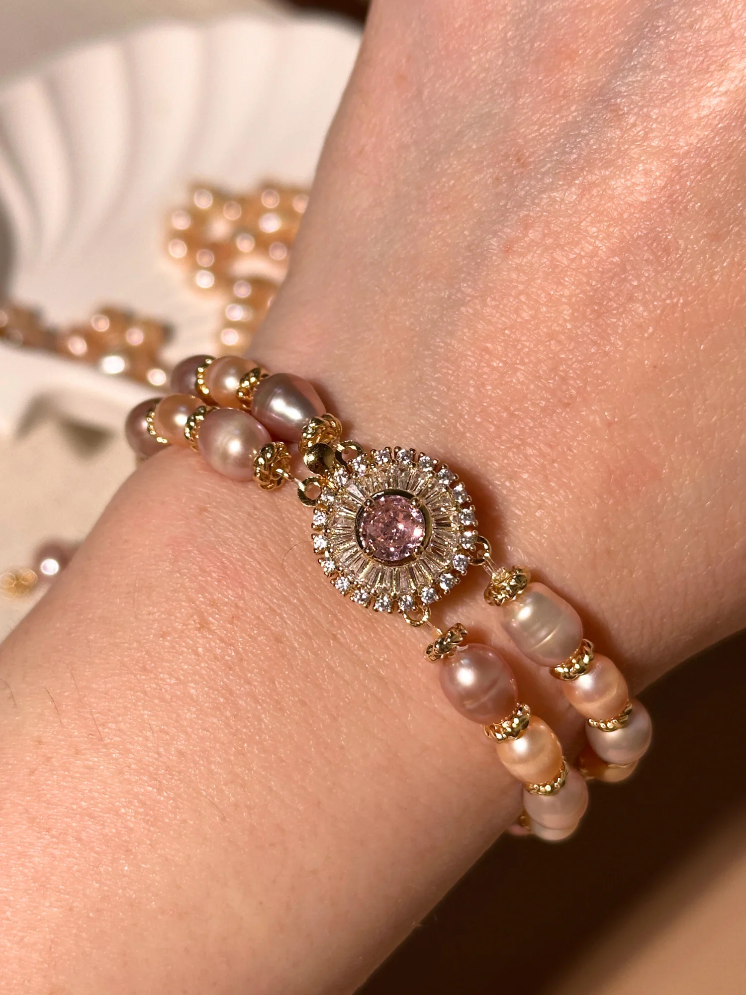 Ophelia Pembe & Mor İnci Kristal Bileklik