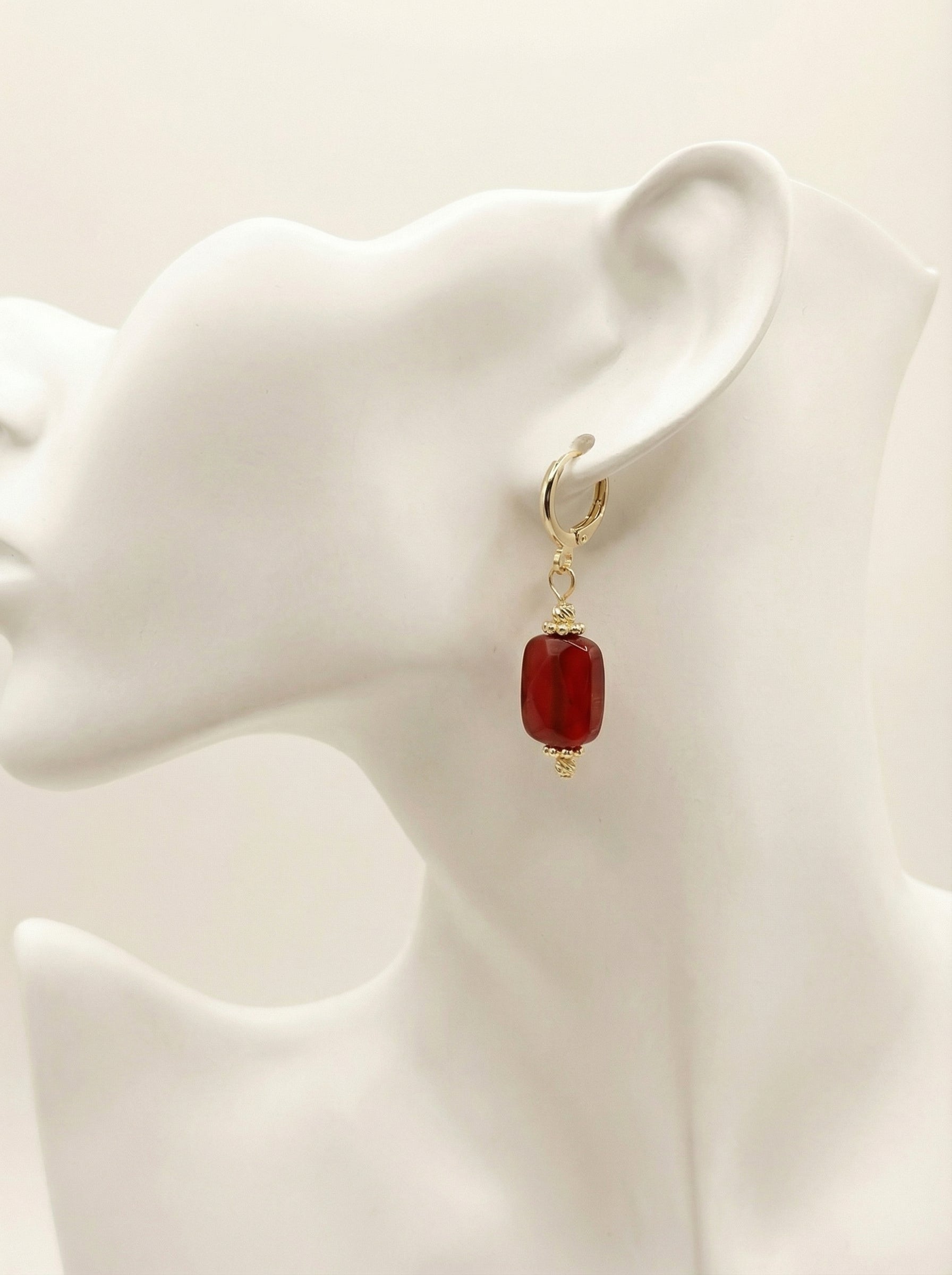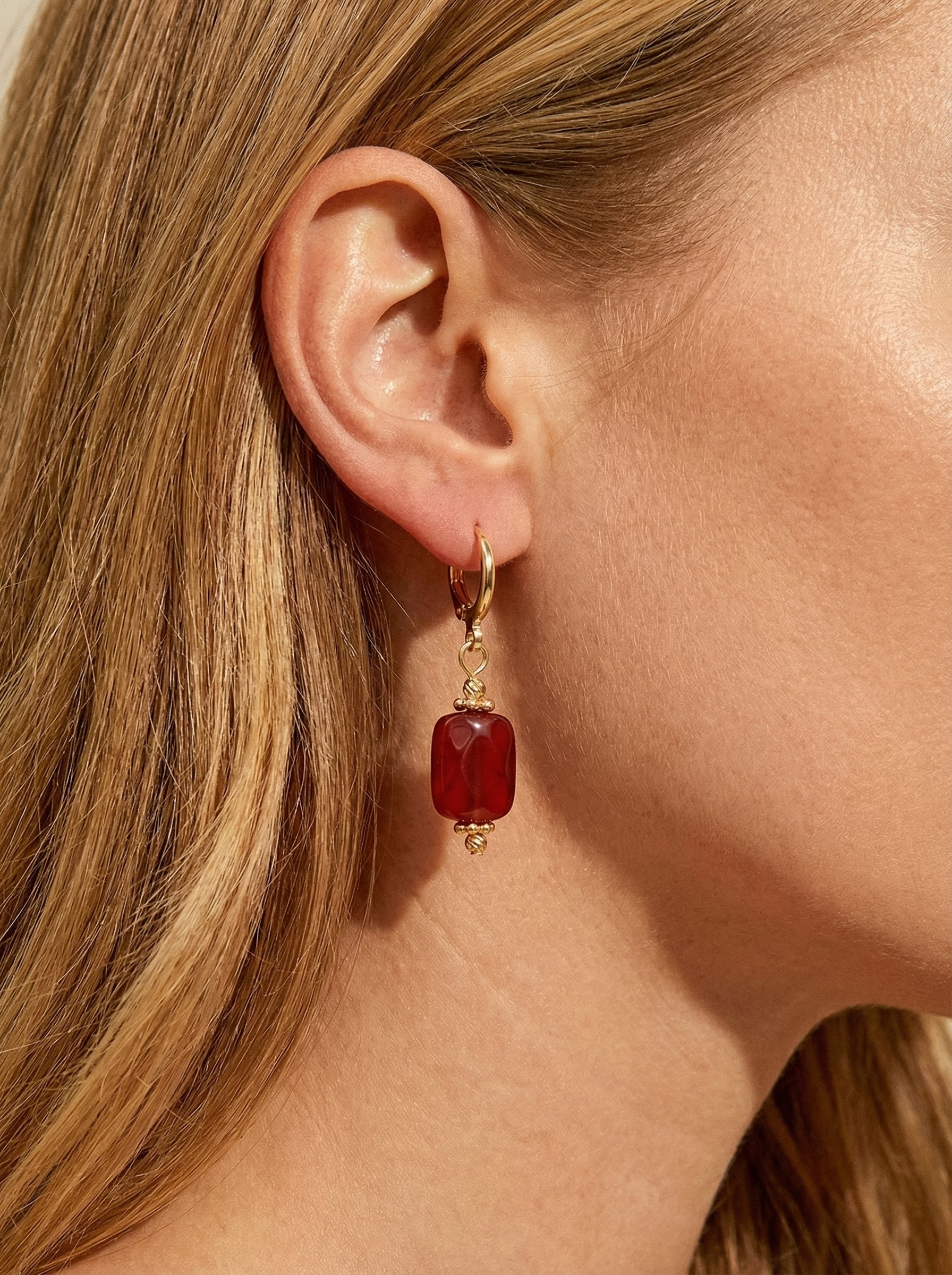 Zarafetin en tutkulu hâli... Rhea Yakut Küpe, derin kırmızı doğal taşların asil enerjisini 14 ayar gerçek altın kaplamalı detaylarla buluşturur. Işığa göre canlılık kazanan taşların sıcak tonları, güçlü ama zarif bir görünüm yaratır. Her parça, tutkuyu, özgüveni ve kadınsı gücü simgeleyen özel bir ışıltı taşır.