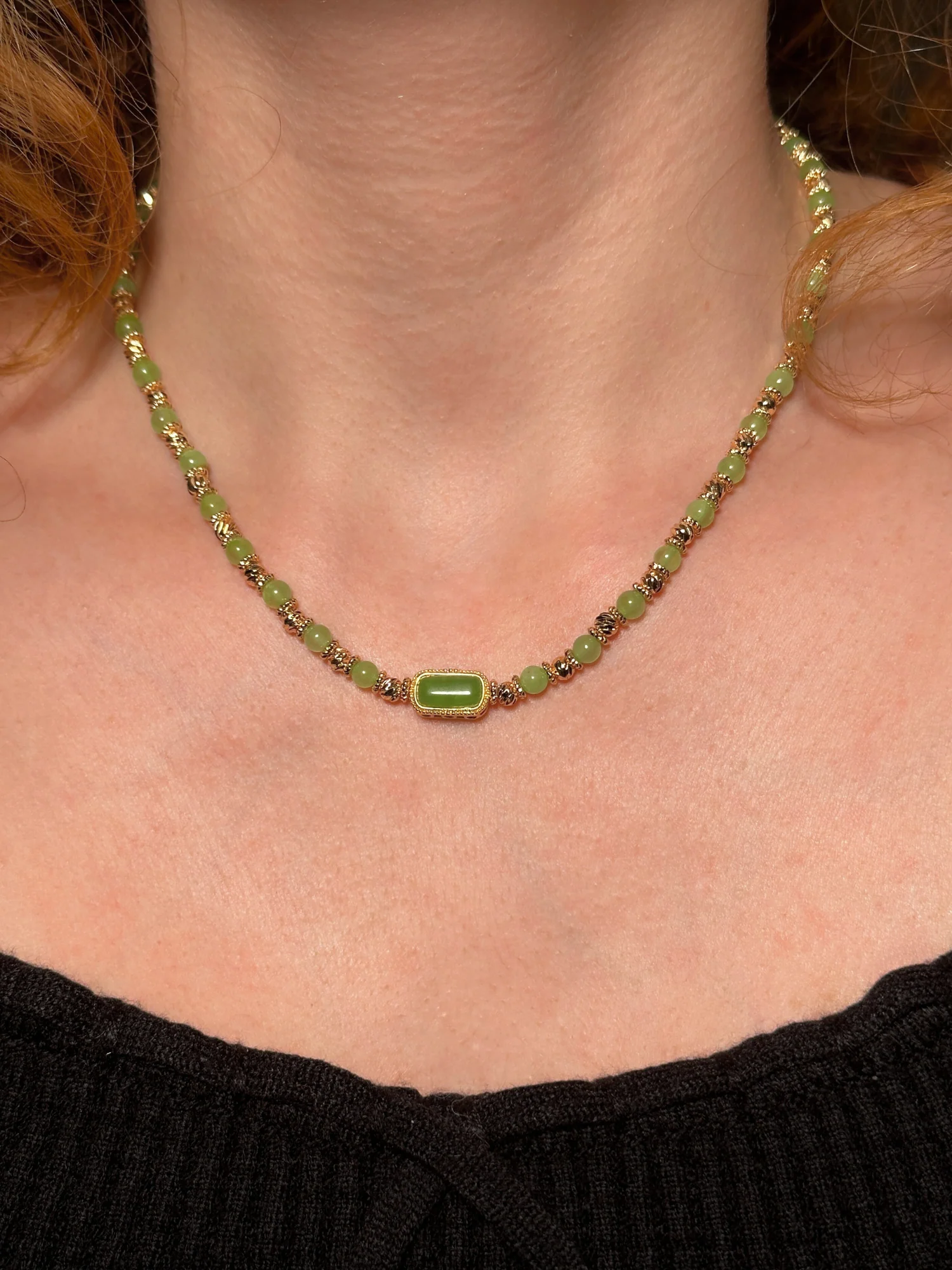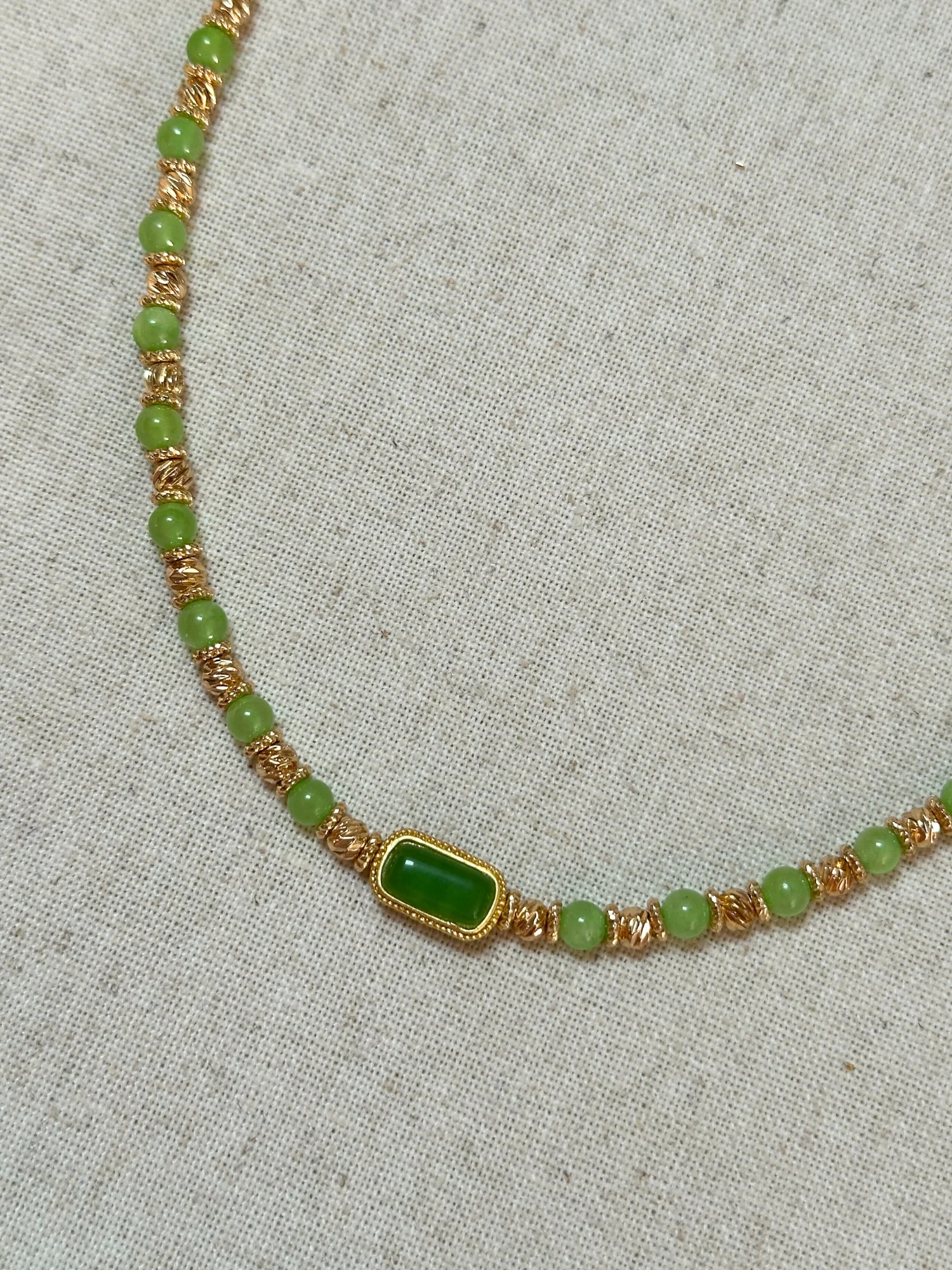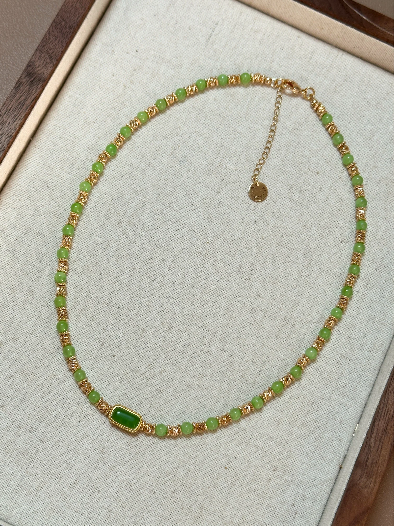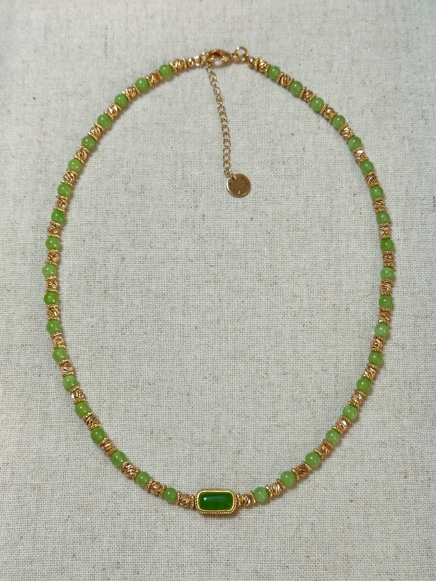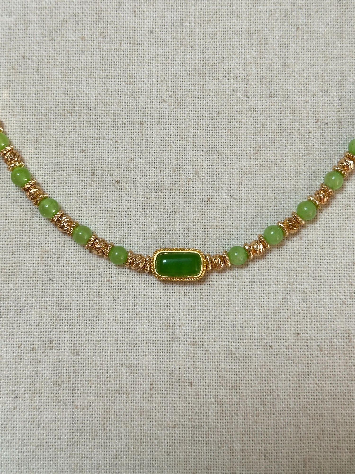 Yumuşak toprak tonlarında 4 mm grape chalcedony taşları, parlaklığıyla öne çıkan 14K gerçek altın kaplama detaylarla buluşur — her bir unsur kalıcılığı, zarafeti ve sıcak ışıltısıyla öne çıkar.