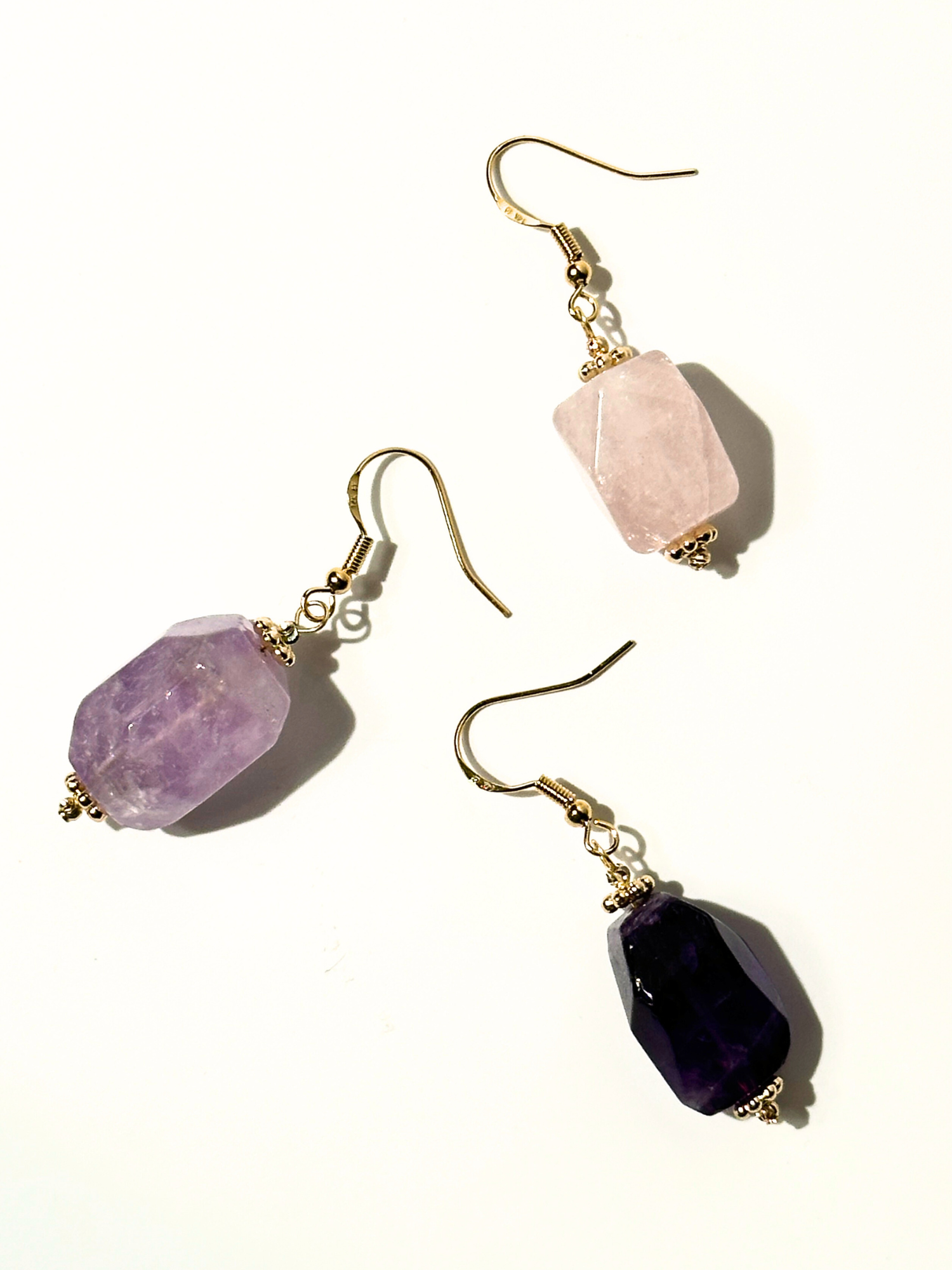 - Materyal: Faset kesim büyük boy doğal taş; Açık mor ametist, mor ametist, pembe kuvars ve peridot seçenekleri ile