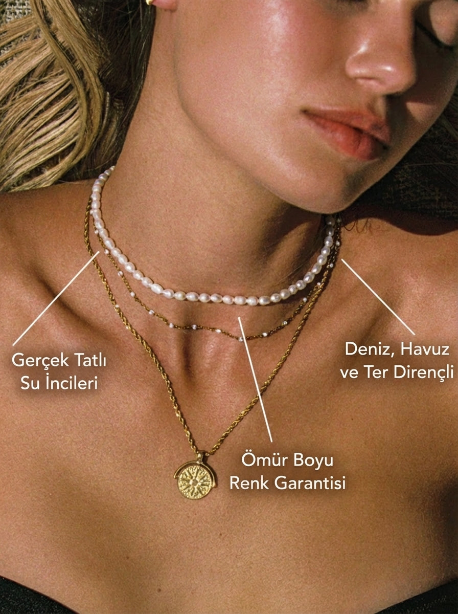 Serene Tatlı Su İncisi Choker ile stiline tek hamlede güçlü bir dokunuş kat. Bu kolyede dizili her bir gerçek mini tatlı su incisi, doğal yapısı gereği farklı ve benzersizdir; tıpkı senin gibi. İncelikli parıltısı ve zamansız duruşuyla hem tek başına şık bir ifade yaratır hem de katmanlı kombinlerde mükemmel tamamlayıcı olur.