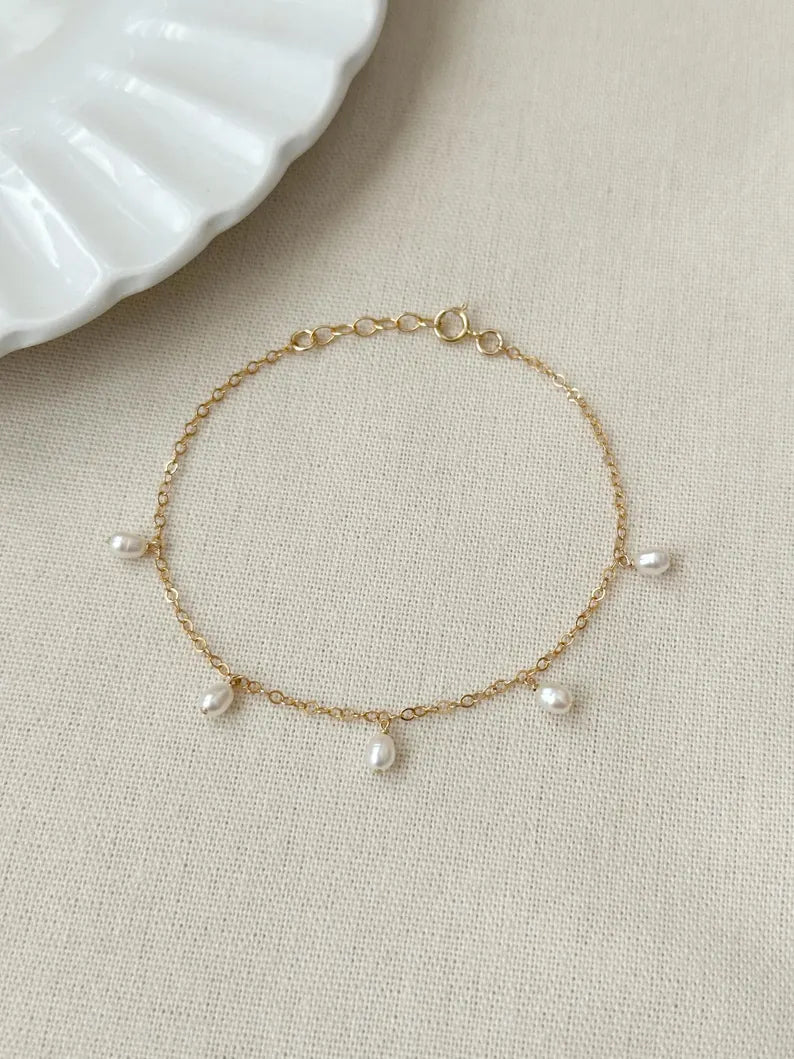 Venice Bileklik, zarif altın zincirine asılı beş adet doğal tatlı su incisiyle klasik şıklığı modern sadelikle buluşturur.