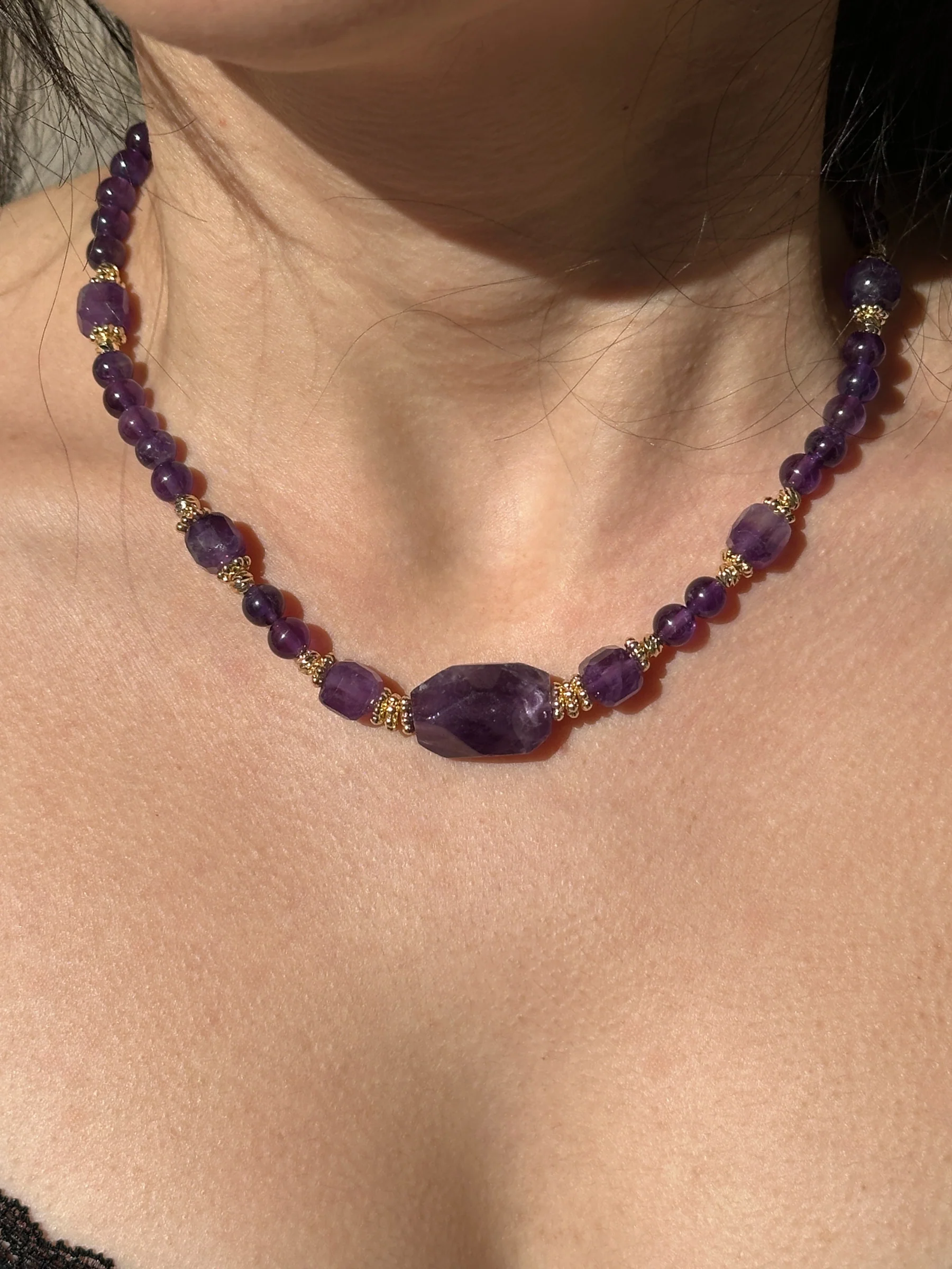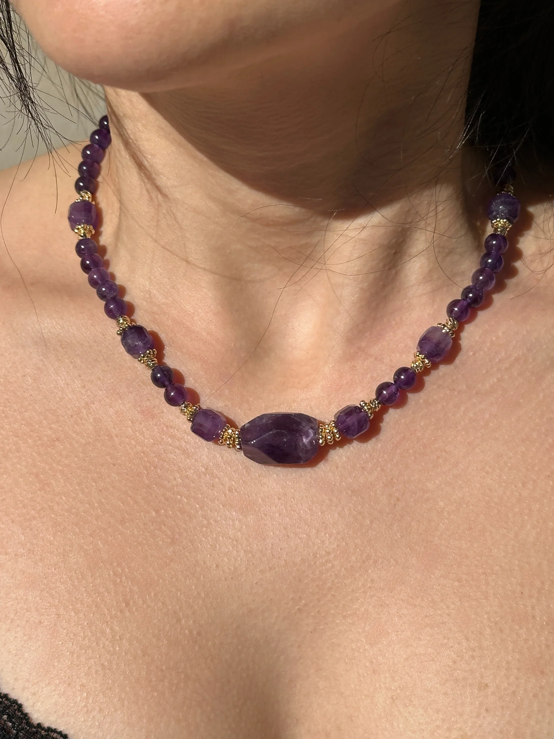 Bold / Star Parça: Büyük merkez taşlı ametist kolye, göz alıcı ve dikkat çekici tasarım