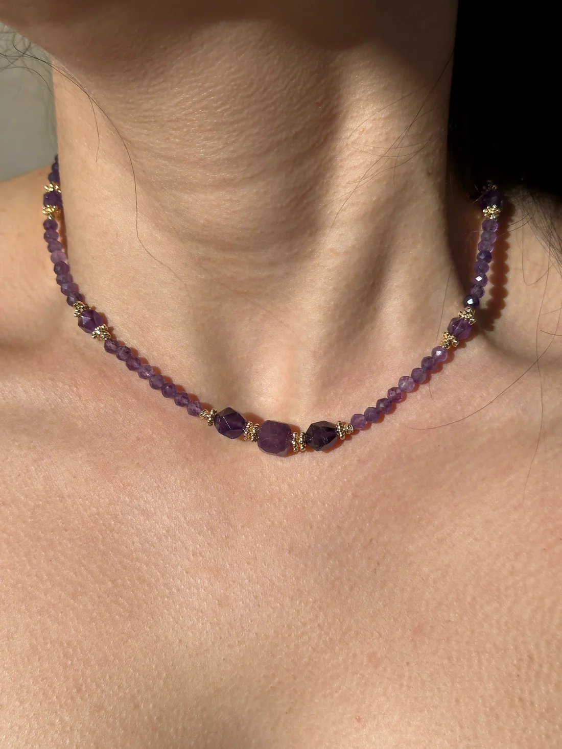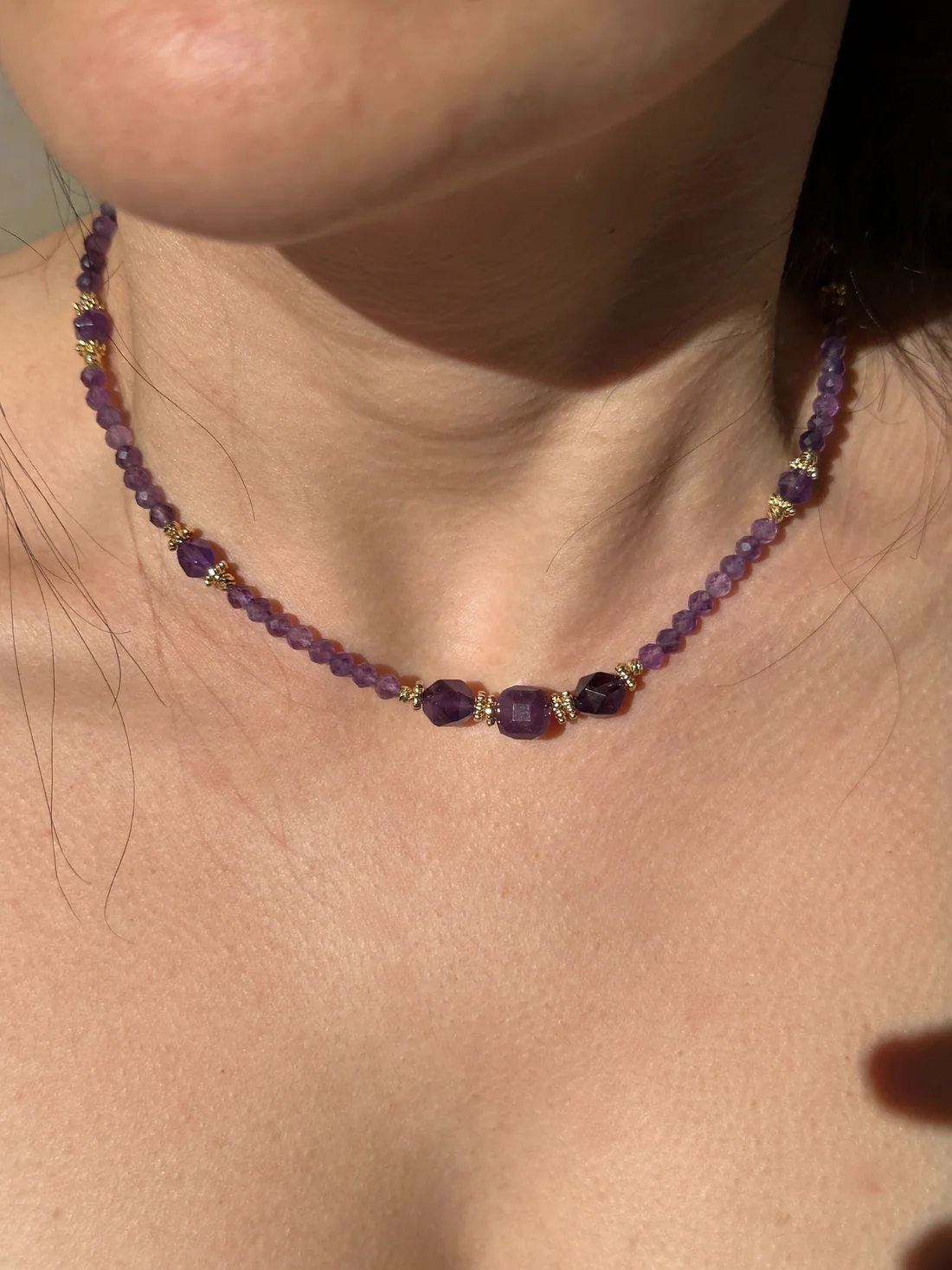Minimal / Günlük: İnce yapıdaki elmas kesim ametist kolye, zarif ve sade lüks görünüm
